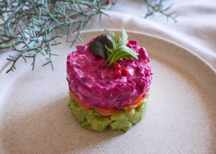 今年のクリスマスは、ビーツを使って色鮮やかな「ビーツ・アボカド・サーモンタルタル」の前菜なんていかがでしょう?